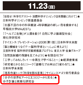 サイエンスアゴラ2008(2008/11/22-24,国際研究交流大学村)の新しいパンフレットがダウンロードできるようになった。